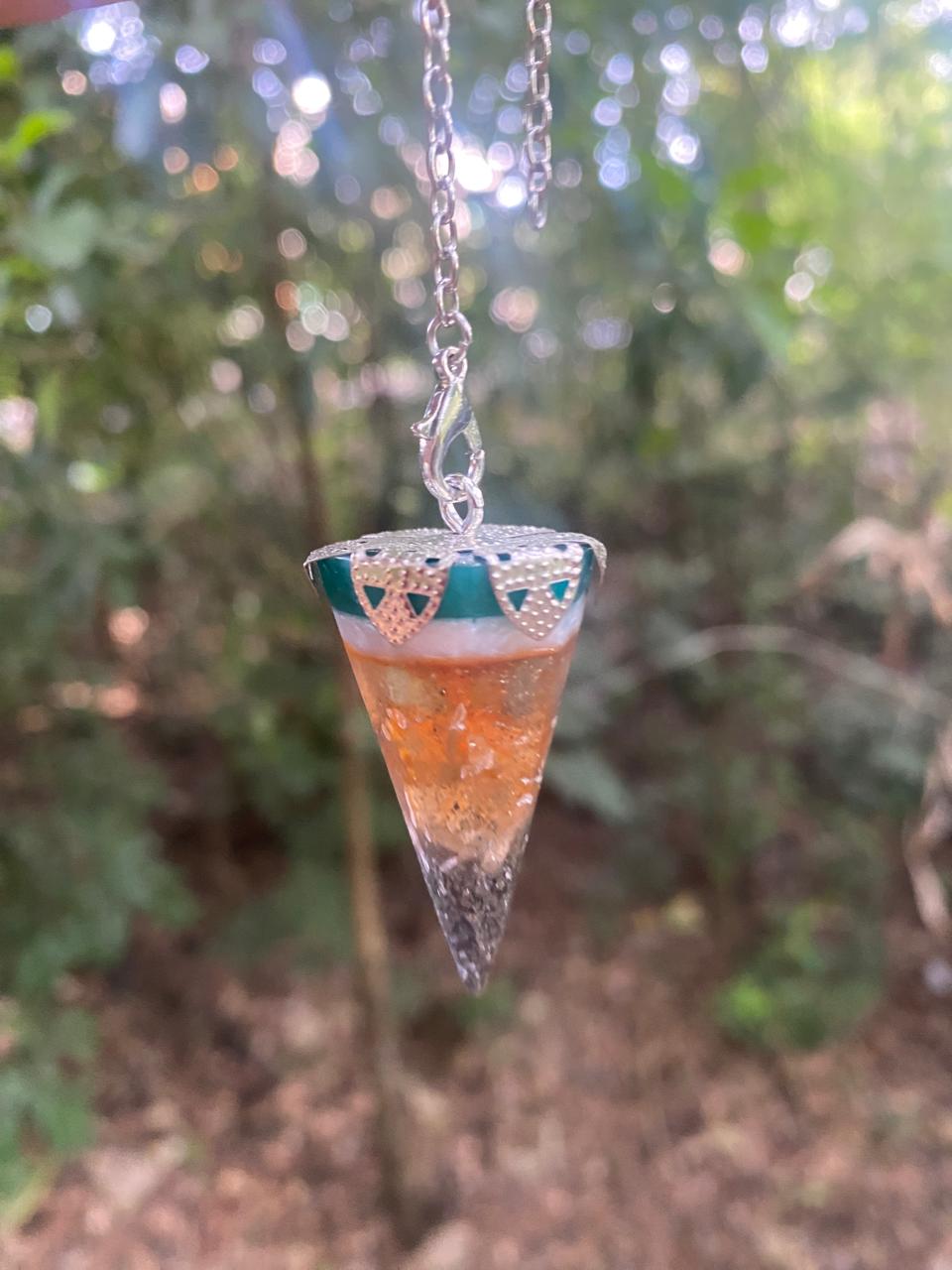 Componentes: Cianita Azul, Selenita Laranja, Quartzo Hialino